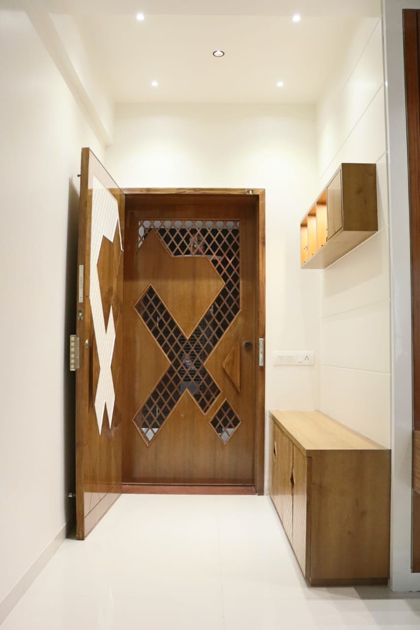 Harmonious Monochrome Haven is a design concept focused on creating a balanced and cohesive interior using a monochromatic color scheme. This concept emphasizes the harmonious integration of shades, textures, and materials to achieve a serene and elegant living space. Each element, from the exquisite jaali door at the main entrance with its contrasting veneer and white PU finishes to the appealing TV unit and coordinated ceiling wooden design in the living area, carefully selected to ensure visu Read Details