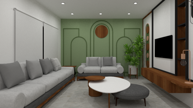 Revitalize your interior space into a captivating dream home with our visionary design. Beginning with the striking Jaali door and Main Door, enhanced by natural cladding and contrasting veneer and stone finishes, we ensure an enchanting first impression. The living space thrives with a TV unit and a consistent semicircle pattern throughout, complemented by innovative semi partitions and the Mandir that define and seamlessly connect spaces. A monochromatic palette enhances the home graceful spac Read Details